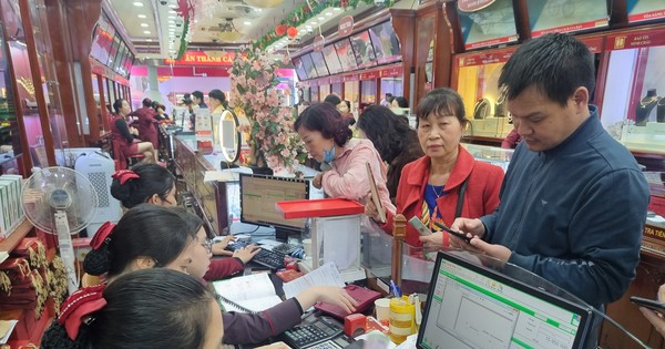 Trên các phố vàng ở Hà Nội như Trần Nhân Tông (Hai Bà Trưng), Cầu Giấy…, nhiều cửa hàng vàng tấp nập khách mua bán. Thậm chí có cửa hàng thông báo khách mua vàng nhẫn với số lượng trên 4 lượng, sau gần 1 tháng mới lấy được vàng.