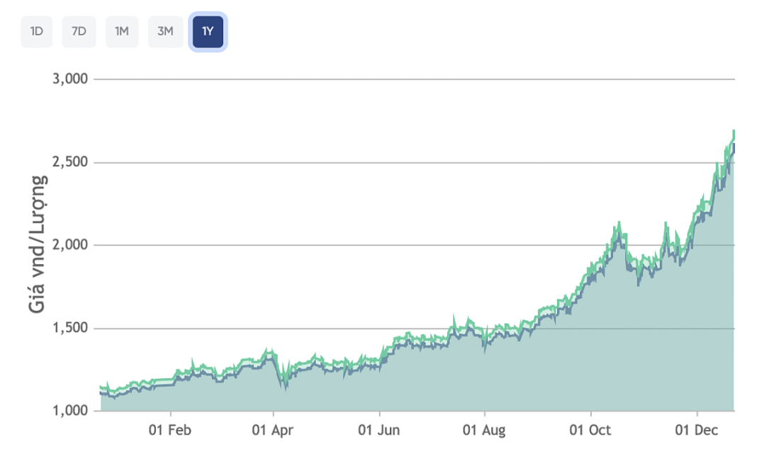 Diễn biến giá bạc miếng trong vòng một năm trở lại đây. Ảnh: Phú Quý