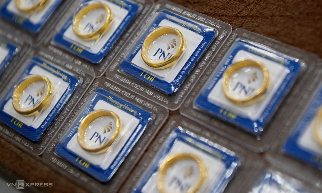 Vàng nhẫn trơn trưng bày tại cửa hàng. Ảnh: Giang Huy