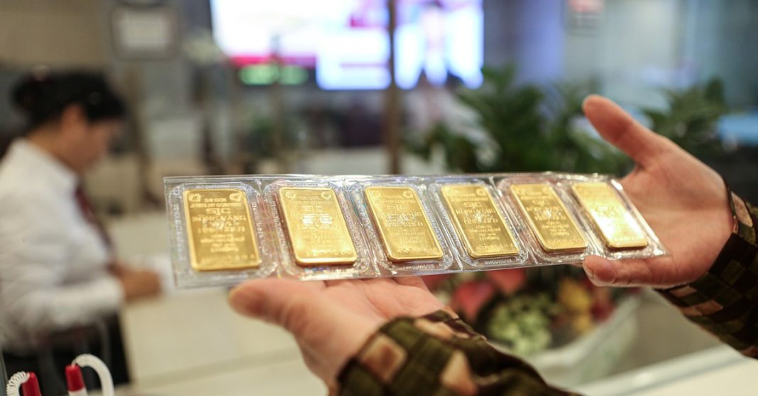 So với giá vàng thế giới quy đổi, giá vàng miếng SJC đang cao hơn 21,1 triệu đồng/lượng – Ảnh: P.Q