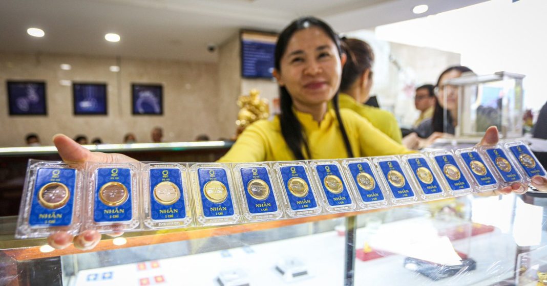 Giá vàng miếng SJC hôm nay giảm 500.000 đồng/lượng, còn giá vàng nhẫn giữ nguyên – Ảnh: PHƯƠNG QUYÊN