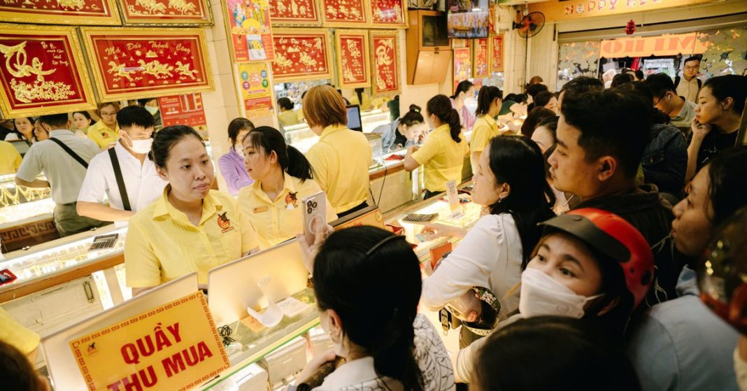 Giá vàng thế giới tăng dồn dập khiến giá vàng trong nước cũng phá hết kỷ lục này đến kỷ lục khác – Ảnh: THANH HIỆP