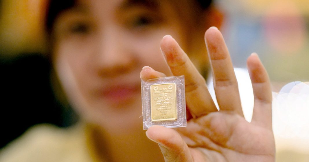 So với giá vàng thế giới quy đổi, giá vàng miếng SJC đang cao hơn đến 24,3 triệu đồng/lượng – Ảnh: THANH HIỆP