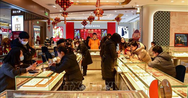 Khách hàng chọn mua trang sức tại tiệm vàng ở tỉnh Sơn Đông, Trung Quốc. Ảnh: THX/TTXVN