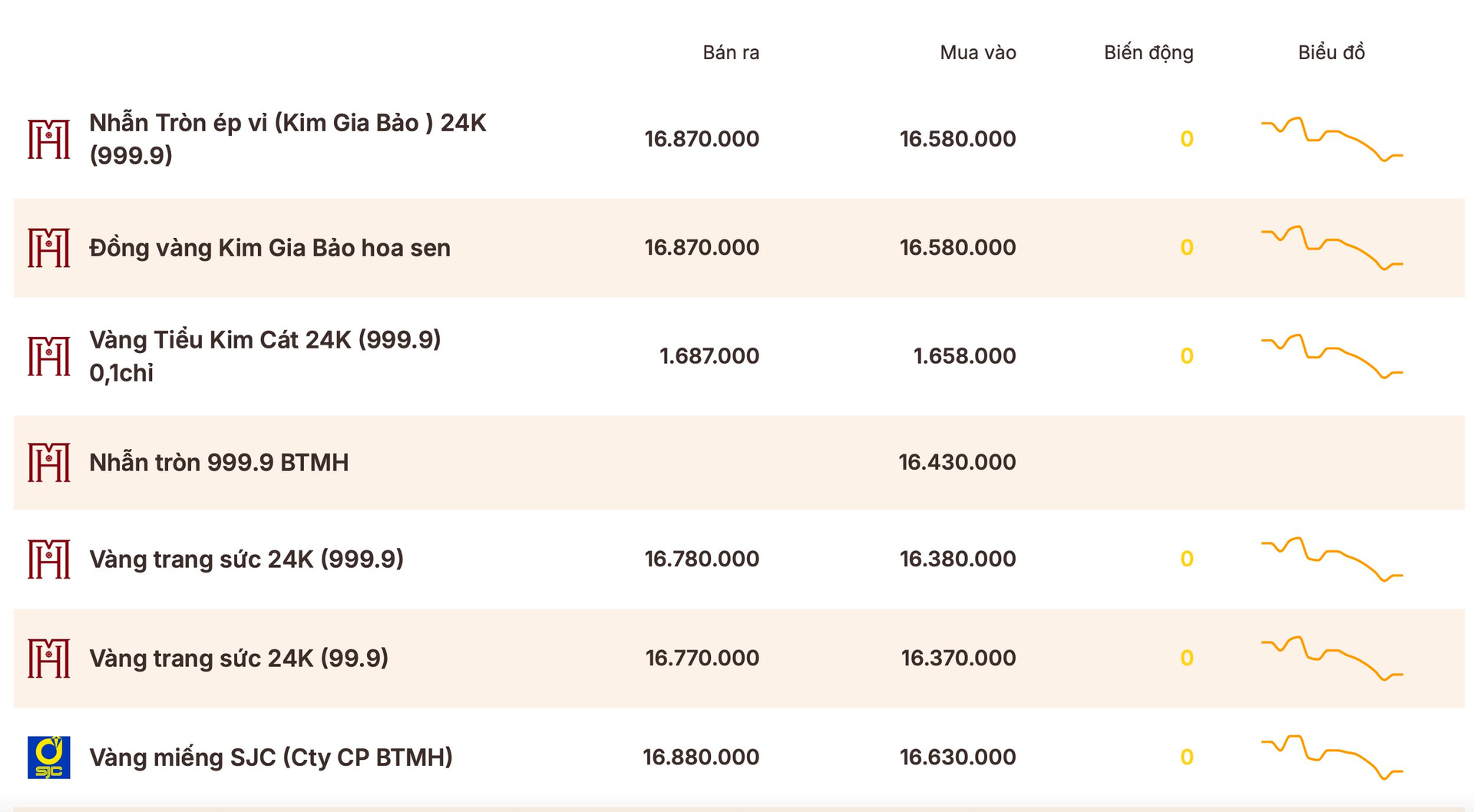 Giá vàng tại BTMH vào cuối tuần