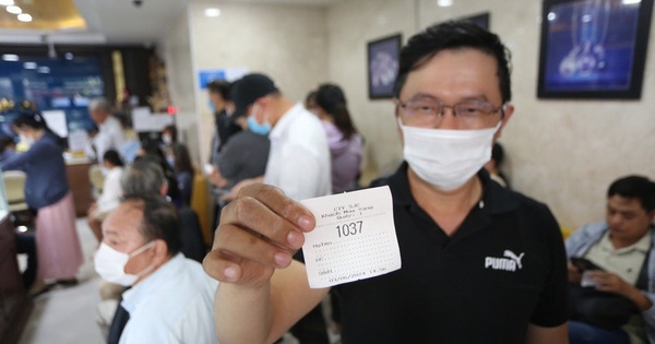 Khách hàng được phát số thứ tự để chờ tới lượt mua vàng – Ảnh: PHƯƠNG QUYÊN
