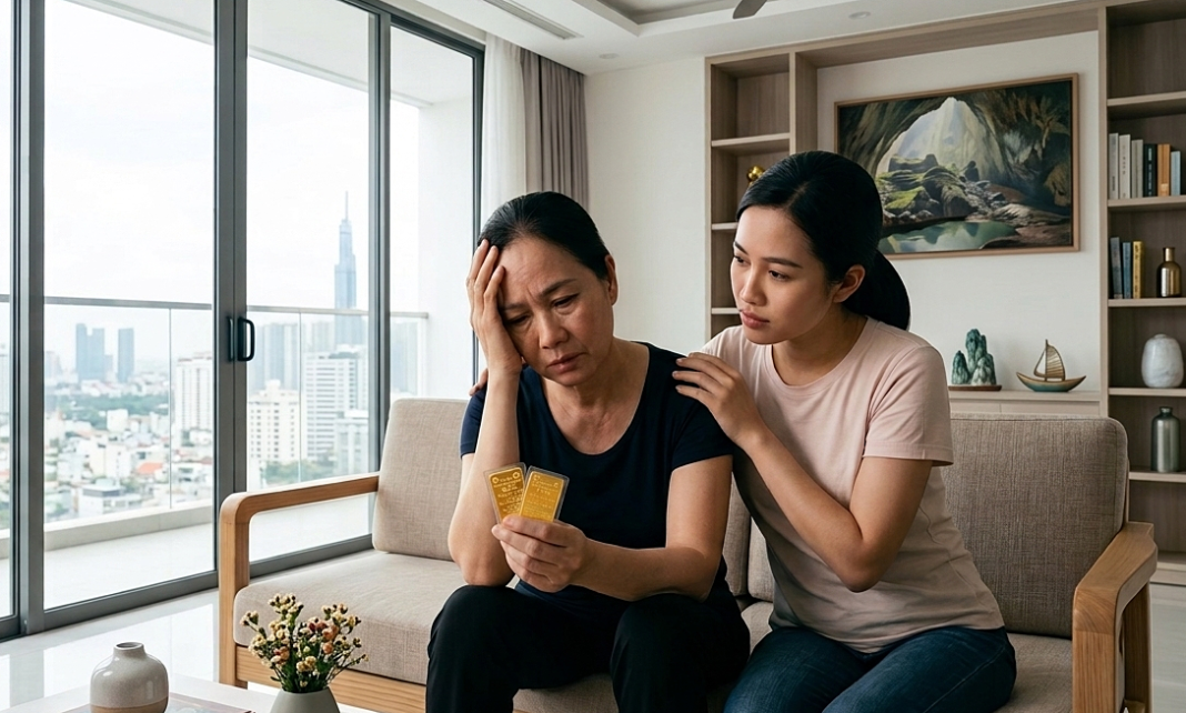 Bà nghe theo lời rủ rê đầu tư của mấy người bạn, mua 5 lượng vàng, gần như dốc hết số tiền tích góp bao năm. Tôi không phản đối, cũng không ủng hộ vì đó là tiền của mẹ. Một phần khác, chính tôi cũng bị cuốn theo tâm lý “ai cũng đang lao vào vàng” nên chẳng có lý do gì để ngăn cản mẹ.
