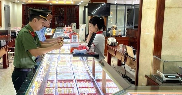 Lực lượng chức năng kiểm tra tại cửa hàng kinh doanh vàng