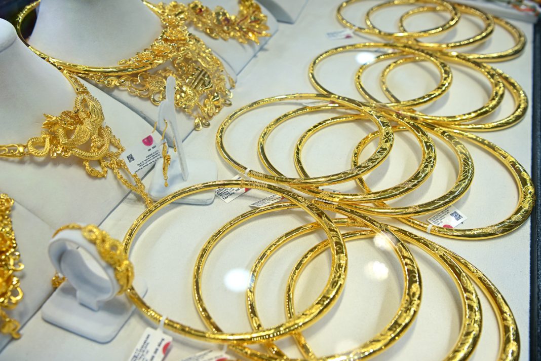 Vàng nữ trang được bày bán tại một cửa hàng trên phố Trần Nhân Tông, Hà Nội. Ảnh: Giang Huy