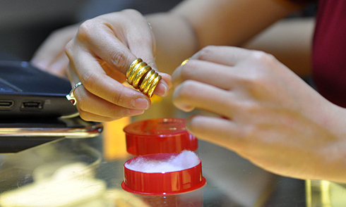 Đà tăng nhanh của vàng nhẫn khiến khoảng cách giữa mặt hàng này với vàng miếng SJC ngày càng thu hẹp. Hiện, mỗi lượng vàng nhẫn kém 7,6 triệu đồng so với vàng miếng.