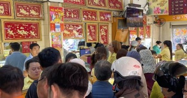 Trong khi đó, quầy thu mua vàng của doanh nghiệp này cũng hàng dài khách chờ giao dịch. Vì quá đông nên mỗi khách phải chờ mất 20-30 phút mới tới lượt, điều ít khi xảy ra với doanh nghiệp này từ Tết đến nay, dù cửa hàng luôn rất đông khách mua bán.